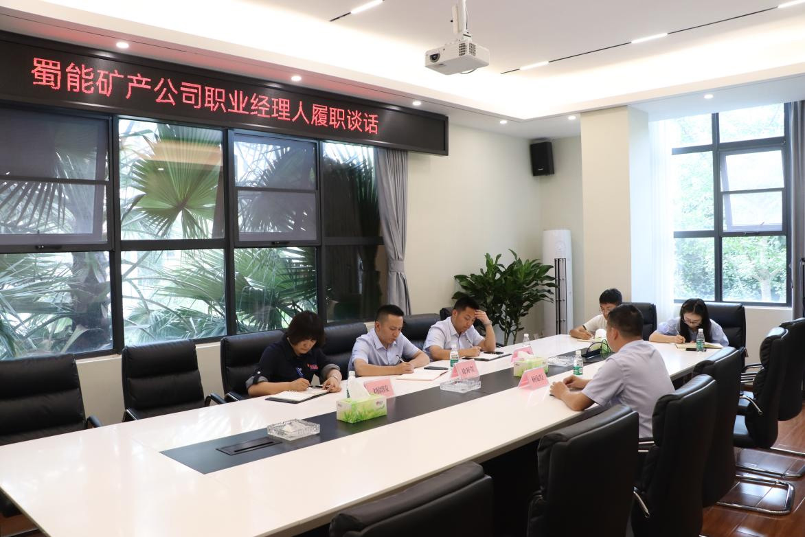 为加强蜀能矿产公司市场化选聘高级管理人员考核监督常态化机制建设,贯彻党管干部原则,落实董事会职责职权,6月19日,公司党支部书记、董事长徐开贵主持召开公司职业经理人履职谈话。谈话就被谈话人工作实绩及问题分析、工作作风、廉洁从业、工作建议等五个方面进行,谈话过程全程纪实。