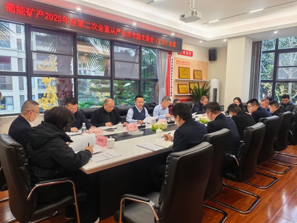 为深入贯彻落实新时代党的建设总要求,坚定不移推进全面从严治党向纵深发展,12月8日上午,蜀能矿产召开2025年度第二次全面从严治党专题支委会(扩大)会议。公司党支部书记、董事长徐开贵主持会议并讲话。