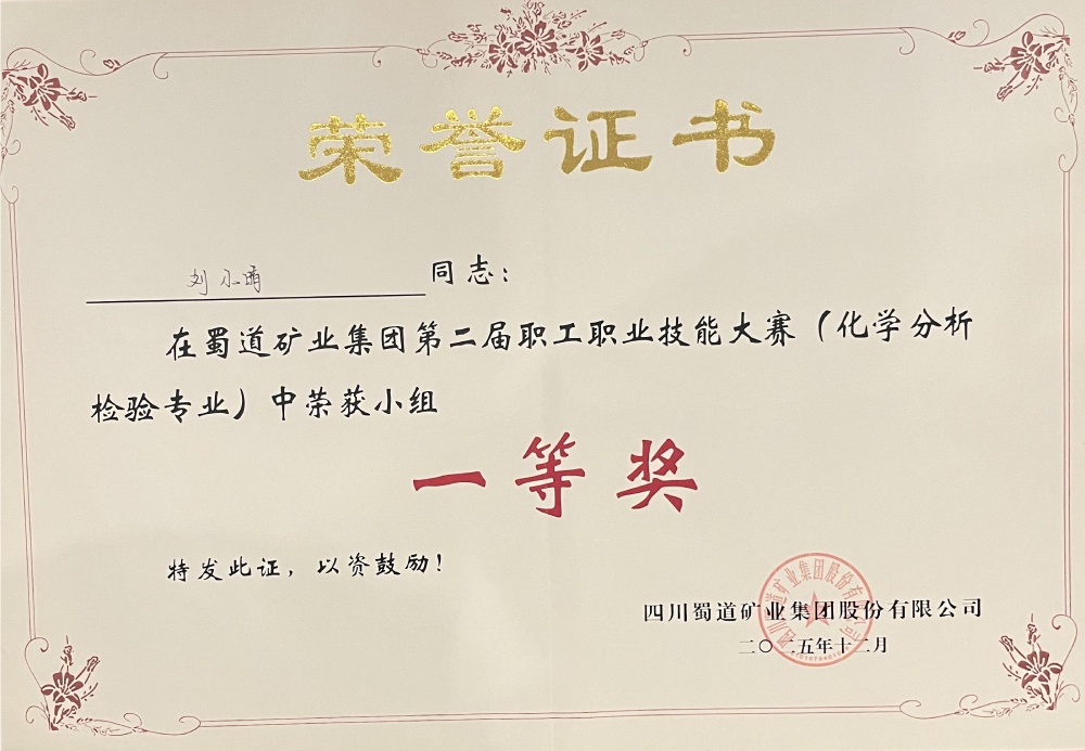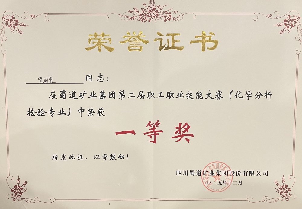 12月19日,蜀道矿业集团第二届职工职业技能大赛(化学分析检验专业)圆满落幕。本次大赛围绕化学检验员岗位核心能力设置专业知识测试,聚焦化学分析检测中的关键环节——标准溶液配制与标定、数据处理与分析等典型工作任务,汇聚了来自7家公司的12支队伍。经过为期两天的层层角逐,蜀能矿产三号矿山技术质量科黄明霞、刘小晴凭借扎实的理论功底和规范的实操技能斩获团队一等奖。同时,黄明霞获个人一等奖,刘小晴获个人三等奖。