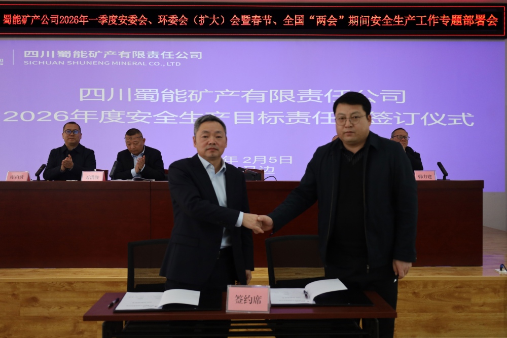 2月5日,蜀能矿产召开2026年一季度安委会、环委会(扩大)会暨春节、全国“两会”期间安全生产工作专题部署会,公司党总支副书记、总经理吴太茂主持会议并讲话。