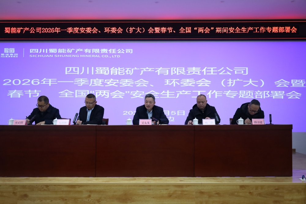 2月5日,蜀能矿产召开2026年一季度安委会、环委会(扩大)会暨春节、全国“两会”期间安全生产工作专题部署会,公司党总支副书记、总经理吴太茂主持会议并讲话。
